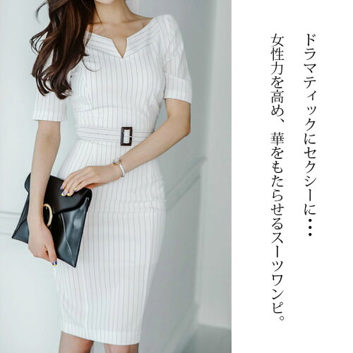 【即日配送 あす楽】セクシー ワンピース セクシーワンピース ワンピ セクシーワンピ 白 タイトワンピース タイトワンピ ミディアム 膝丈 スーツ 半袖 袖あり タイト スリット スカート 上品 清楚 きれいめ パーティードレス 結婚式 服 二次会 同窓会 大人っぽい