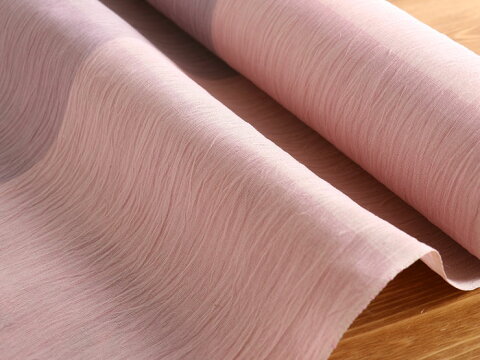 緯糸(よこいと)に強度の撚りをかけ丹念に織り上げ、入念に“ 湯もみ ”をすることによって、独特のシボを生じさせています。